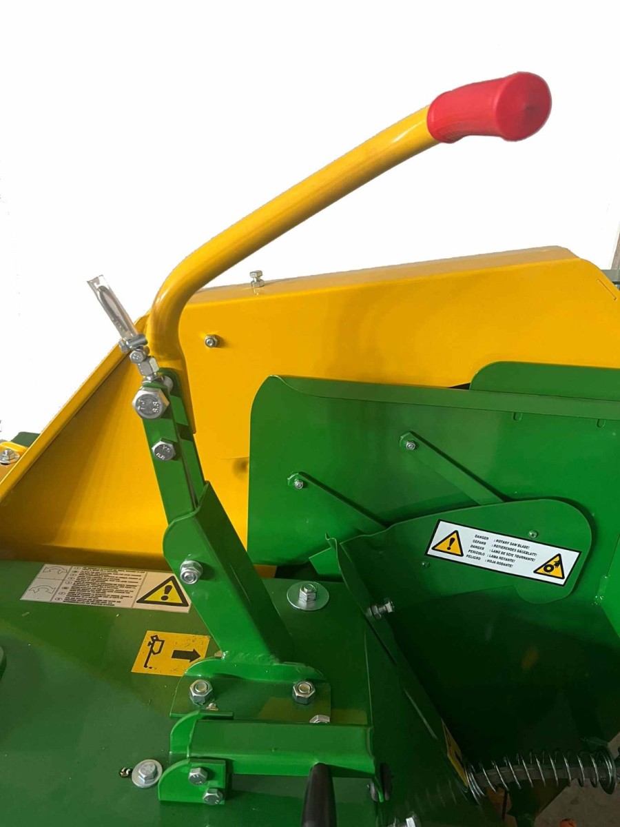 Curelele trapezoidale, caracterizate prin performanță ridicată și durabilitate, asigură transmiterea mișcării de la arborele de antrenare la ax. Dispozitivul de pornire amplasat pe mâner servește și ca protecție pentru mâini.